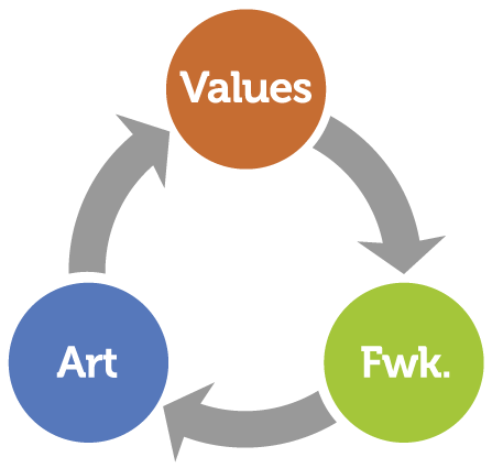 With mythical art, the artist is facilitator of transcendence. Connecting with ‘the world behind’ actually validates current decisions when they are seen as consistent of the laws of that other world, as revealed by mythical art, which by the way, can include dance. Artists with community-sacred values are to be valued as a myth-crafters, those who create the means of collective healing and transformation.